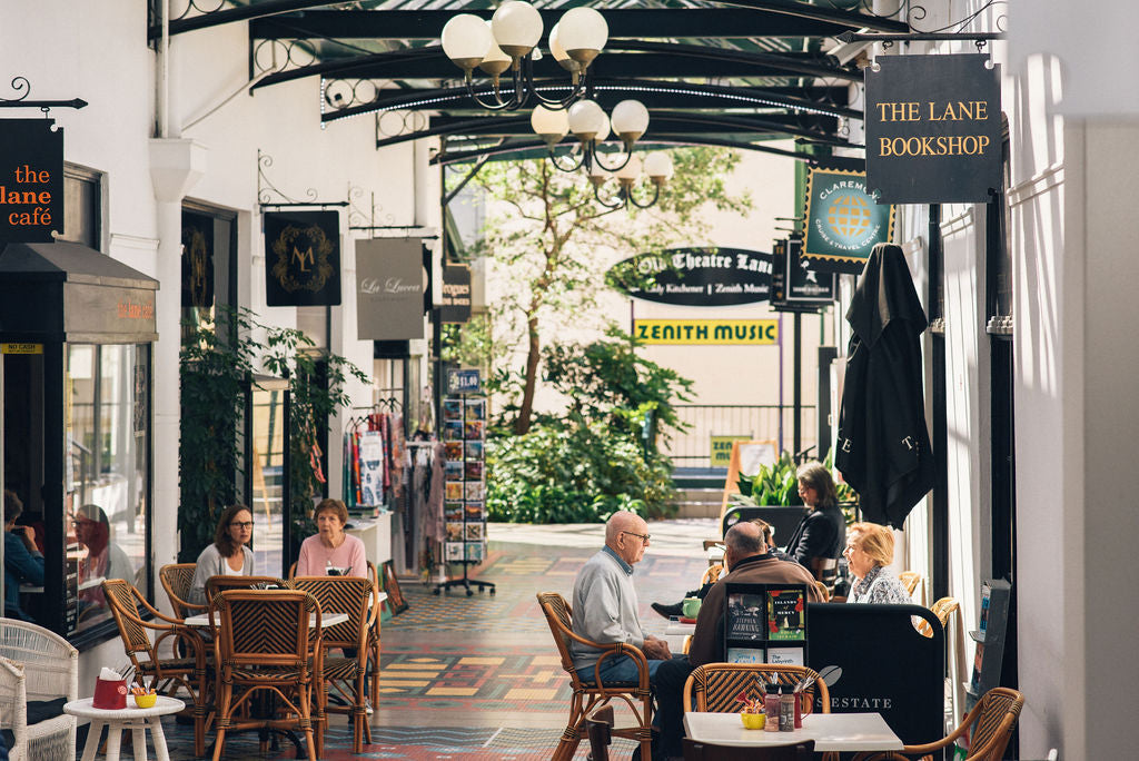 We are situated in Old Theatre Lane, Claremont. This is the shopping arcade that runs from Bay View Terrace towards Leura Avenue. Zenith Music is at the end of the lane.